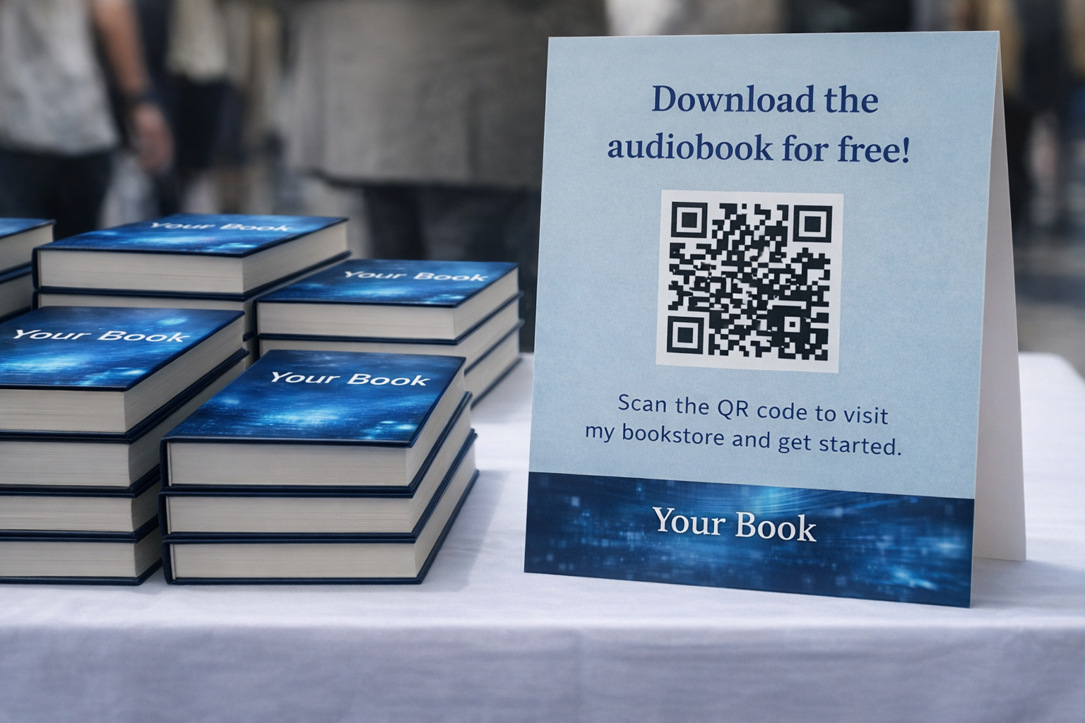 Share a QR code at events, or link to it from your website, email, or social media. Readers land directly in your bookstore—on web, iOS, or Android—with your book or catalog ready to access immediately.They read or listen right away.